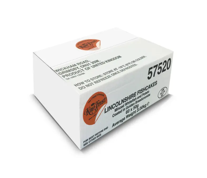 Frozen, traditional fish cakes made with minced white fish and mashed potato, coated in breadcrumbs. 60 x 50g