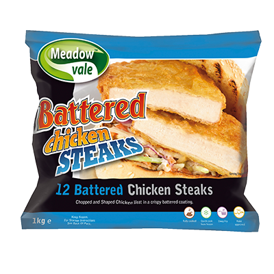 Top quality reformed chicken steak made with white breast meat only and coated in a crispy batter for a tasty appeal. (12X85g)