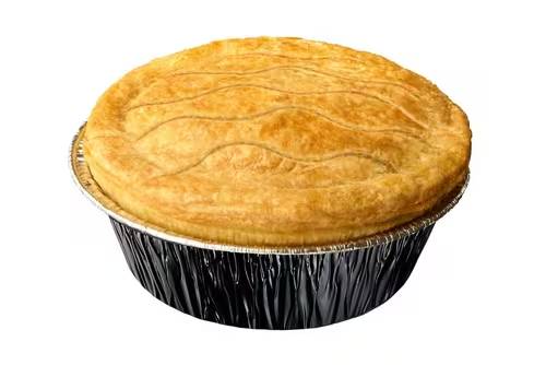 Tender pieces of steak and rich gravy in a light puff pastry case.